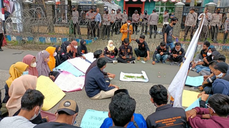 JEJAK.CO, Sumenep- Sejumlah mahasiswa asal kepulauan yang tergabung dalam Himpunan Mahasiswa Kepulauan Sapeken (Himpas) demo kantor PT Sumekar Line, Rabu 23 Februari 2022.