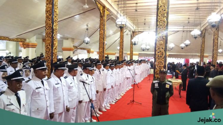 JEJAK.CO – Sebanyak 226 Kepala Desa Terpilih yang tersebar di seluruh kecamatan, baik daratan maupun kepulauan, yang ada di Kota Sumekar sedang diambil sumpah janji untuk membaktikan dirinya kepada desanya di Pendopo Agung Sumenep, pada pukul 09.30 WIB, Senin (30/12/2019).