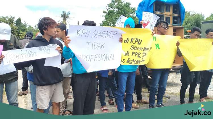 Jejak.co – Ratusan mahasiswa yang tergabung dalam Gerakan Peduli Demokrasi (GPD) melakukan aksi ke kantor Komisi Pemilihan Umum (KPU) dan Kantor Kementerian Agama Sumenep, Kamis (20/2/2020).