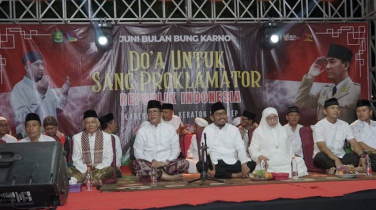 JEJAK.CO – Sebagai bentuk penghormatan atas jasa dan pengorbanan Bung Karno, Pemerintah Kabupaten Sumenep menggelar doa bersama untuk sang proklamator Republik Indonesia di depan Labang Mesem Keraton Sumenep, Sabtu (1/6/2024) malam.