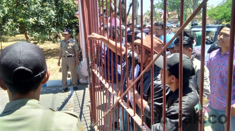 Massa aksi memaksa masuk ke kantor Bupati Pamekasan sehingg terjadi kericuhan