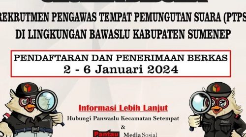 JEJAK.CO, Sumenep – Badan Pengawas Pemilu (Bawaslu) Sumenep membuka pendaftaran pengawas tempat pemungutan suara (PTPS) Pemilu…