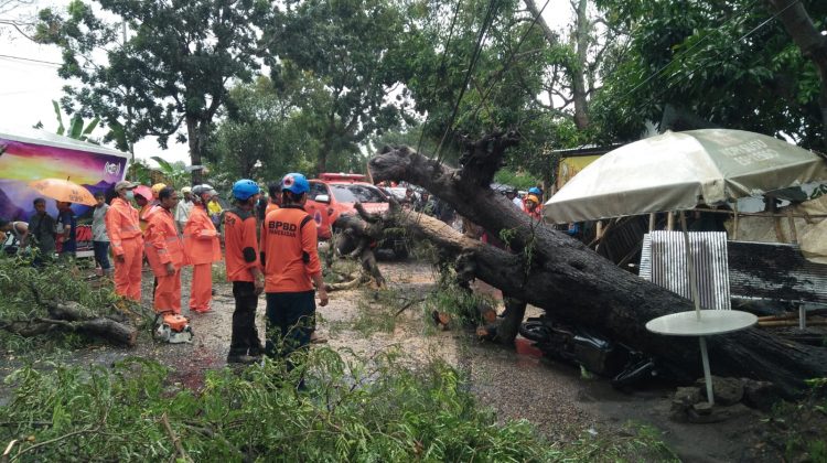 Pemilik motor beat atas nama Hasan bermaksud untuk berteduh di toko yang berdekatan dengan pohon besar itu. Namun nahas motor miliknya malah tertimpa pohon asam yang tiba-tiba roboh.